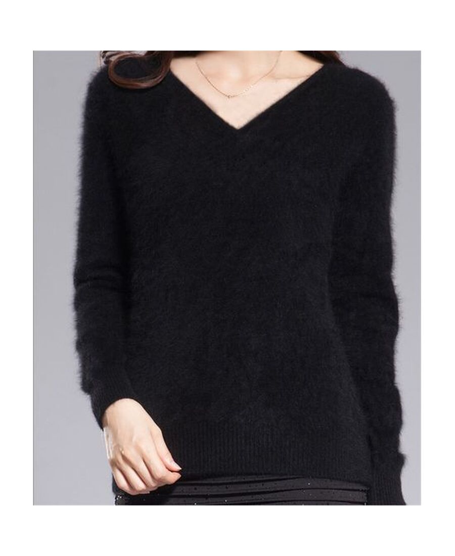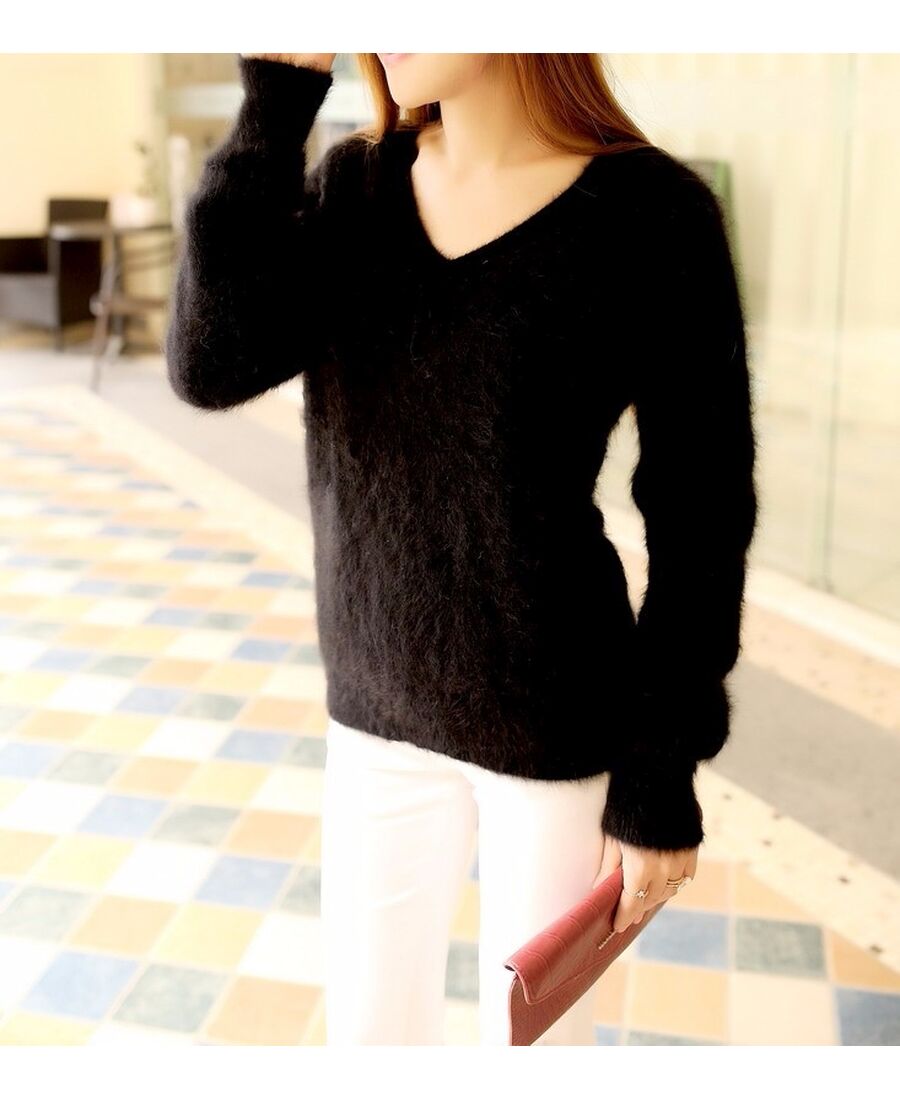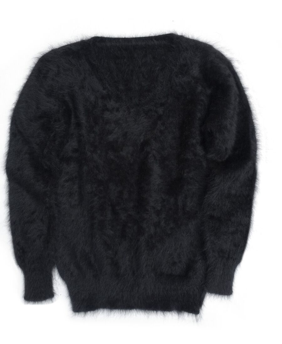 Angora Pullover V-Ausschnitt schwarz "hochflauschig"